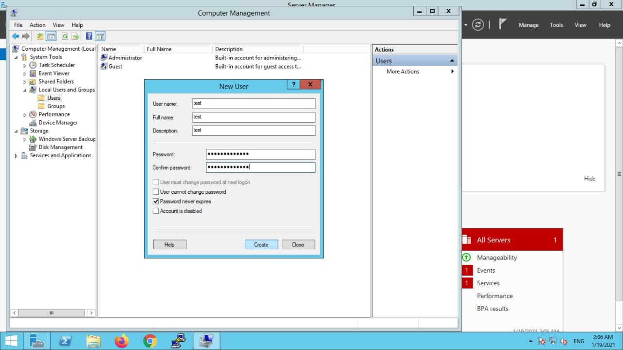 صفحه مورد نظر باز شده و بخش های مربوطه را وارد نمایید و یوزر مورد نظر را create نمایید